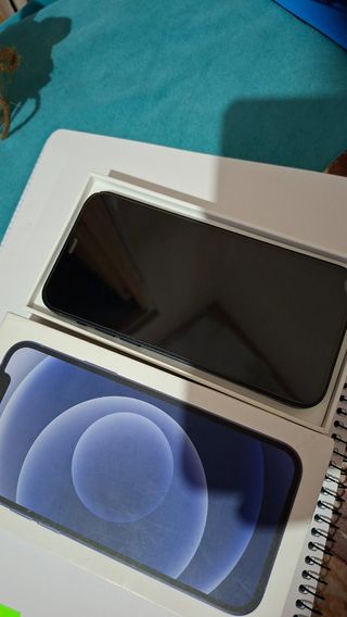 Se vende iPhone 12 en color negro con 128GB de almacenamiento, incluye Earpods y una funda. - Capacidad de 128GB. - Color negro. -capacidad bateria 78% - Incluye : 1)AirPods con cable. NUNCA usados. En precinto original. 2)Funda granate como nueva 3)Caja original 4)Herramienta extractor tarjeta SIM 5) Adhesivos con los logos APPLE. 6)Cable de carga ESTÁ COMO NUEVO. Listo para regalar en su caja original, lo vendo porque me han regalado un móvil nuevo.