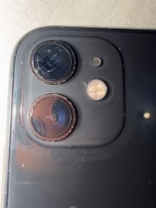 Teléfono móvil iPhone 11 en color negro. - Pantalla de 6.1 pulgadas. - Sistema de cámara dual. - La cámara esta rota pero saca fotos perfectas, de un iPhone 11