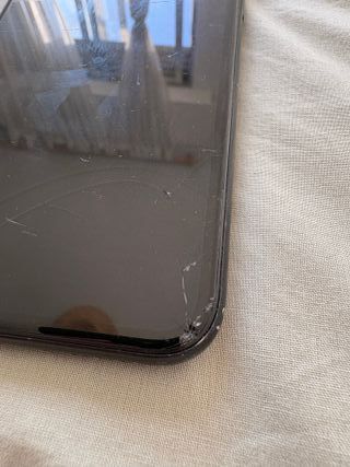 Teléfono móvil iPhone XR en color negro. Pantalla de 6.1 pulgadas. La capacidad de batería es de 79% - Cámara trasera de 12 MP. - Chip A12 Bionic. tiene la pantalla delantera un poco trizada y lo mismo la trasera, pero funciona bien.