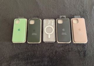 Fundas de silicona para iPhone 14 nuevas a estrenar colores verde pistacho, verde oliva, negro rosa y transparente el precio es de 6€ para cada uno