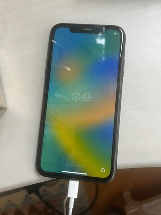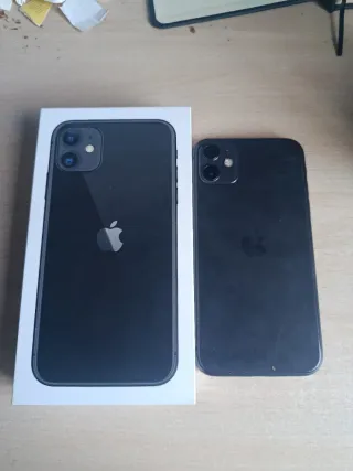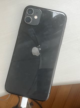Teléfono móvil iPhone 11 en buen estado. - Color negro. - Pantalla de 6.1 pulgadas. - Cámara dual de 12 MP. - Chip A13 Bionic.