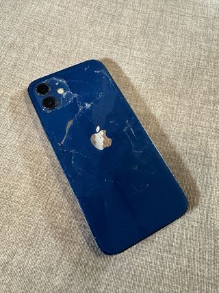 Teléfono móvil iPhone 12 64g con capacidad de almacenamiento de 64GB. : El teléfono funciona perfectamente a pesar de estar roto y un pelin inflamada la batería habria que sustitutla o mirar su estado y cabiar la tapa trasera con funda no se aprecia , el telefono es totalmente funcional La pantalla esta bastante bien aun que tiene pequeños rayones - Color azul - Pantalla de 6.1 pulgadas.