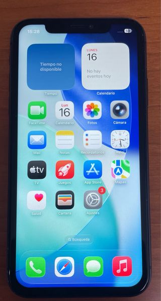 Teléfono móvil iPhone XR con 64GB de almacenamiento. - Color negro. - Pantalla de 6.1 pulgadas. - Cámara trasera de 12MP. - Cámara frontal de 7MP. Muy bien cuidado, en las fotos se aprecia el protector de pantalla.