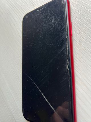 Teléfono móvil iPhone XR en color rojo. - Pantalla de 6.1 pulgadas. - Cámara trasera de 12 MP. - Chip A12 Bionic. -Para reparar o para piezas - la parte de adelante no esta rota ni nada es el protector lo unico roto es lanparte de detras -128 GB -Bateria recien cambiada -Se entrega con 4 fundas -ALGO NEGOCIEBLE