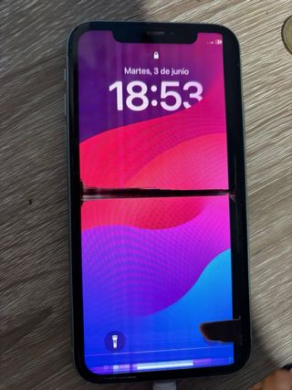Teléfono móvil iPhone 11 en color verde. Ideal para piezas o para quien sepa repararlo. Capacidad maxima de bateria 74% Fuciona , altavoces desgastados y manchas visibles en las fotos en la pantalla - Pantalla de 6.1 pulgadas. - Cámara dual trasera. - Chip A13 Bionic.