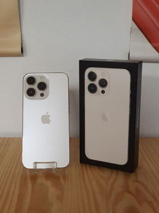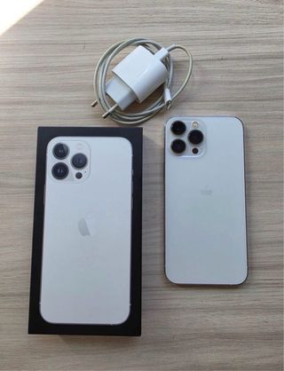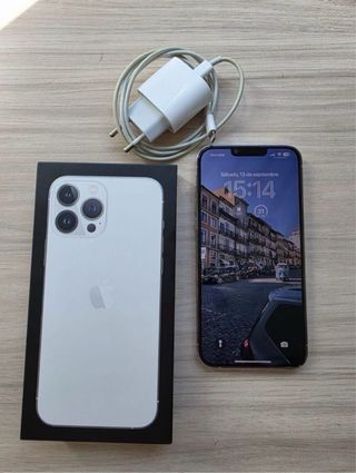 Teléfono móvil Apple iPhone 13 Pro Max en color blanco. Uso de 3 años, comprado en Apple. Batería de un 83%. Teléfono nuevo, con marcas invisibles de uso. - Incluye cargador y cable originales. - Caja original. - Protector de pantalla anti espía. Medidas del producto: • Alto: 16,08 cm • Ancho: 7,81 cm • Grosor: 0,76 cm • Pulgadas: 6,7 Si quieres más información avísame. Se admiten ofertas.