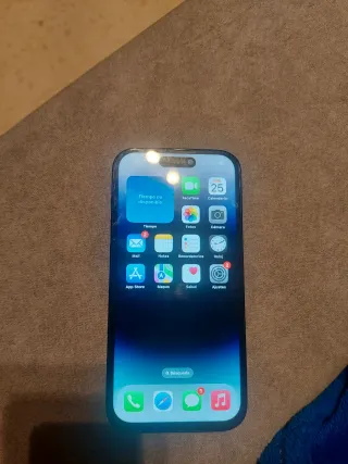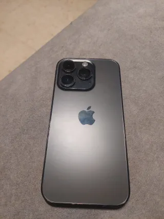 Teléfono móvil iPhone 14 Pro en color negro y plateado. - Pantalla de 6.1 pulgadas. - Cámara Pro de 48 MP. - Chip A16 Bionic. Batería y pantalla recién cambiadas, con lo cual batería al 100% vida útil. NO ORIGINAL Se vende por cambio de smartphone.