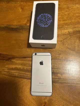 Teléfono móvil iPhone 6 con capacidad de almacenamiento de 32 GB. - Color plata. - En su caja original con todos los folletos, tal cual salió de la casa. - Carga y enciende perfectamente pero falla algo la pantalla táctil, cambiando pantalla funcionará perfecto o para utilizarlo para piezas