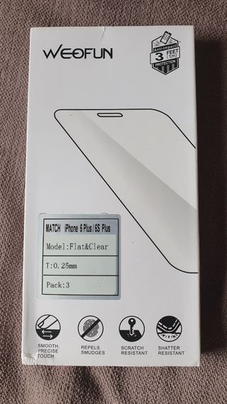 Protector pantalla WEOFUN para Iphone 6Plus y 6Splus. Pack de 3 unidades. Sin abrir