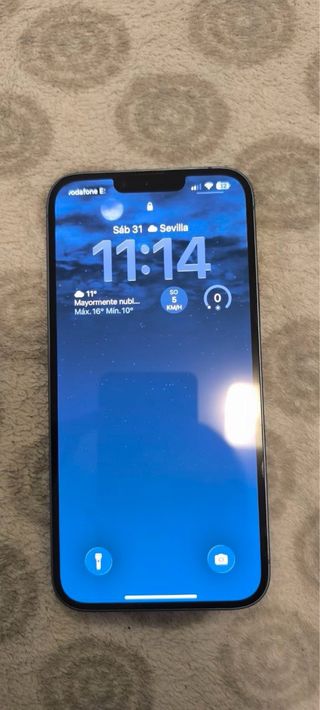 Teléfono móvil iPhone 14 Plus en color azul. En la primera foto parece que tiene un arañón pero es el reflejo del movil - Pantalla de 6.7 pulgadas. - Sistema de cámara dual avanzado. - Chip A15 Bionic. - Salud de batería 84% NO NEGOCIABLE