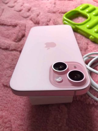Teléfono móvil iPhone 15 Plus en color rosa, incluye cargador, comprado en 2024. - Batería 90% - Pantalla de 6.7 pulgadas. - Chip A16 Bionic. - Cámara principal de 48 MP.