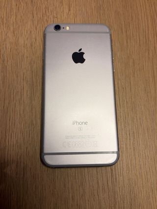 iPhone 6s de 64 GB en color gris space. El teléfono se encuentra en buen estado y funciona correctamente. Se vende sin cargador. Presenta una ligera imperfección en los píxeles de la parte superior de la pantalla, poco visible y fácilmente disimulable con una funda o protector de pantalla.