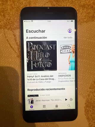 iPhone 6s en buen estado. - 💾 Capacidad de 64GB. - 🟡 Color oro. - 🔋 Batería: Recién cambiada y con la salud al 100%. - 🎁 Estado: Tiene marcas de uso en la parte trasera y una pequeña marca en la esquina inferior derecha de la pantalla como se puede ver en la imagen. - 🔌 Cargador: No incluído. - ☁️ iCloud: Libre Tengo disponibles fundas para el móvil que vendo a parte. Incluyo fotos en el anuncio. Si te interesarían no dudes en escribirme. ¡Tengo más productos a muy buen precio en mi perfil! ¡No dudes en mirarlos!