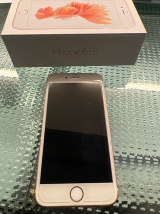 Teléfono móvil iPhone 6s en color Oro Rosa. - Capacidad de 32GB. - Diseño elegante y moderno. - En caja y con instrucciones originales. - Solo teléfono, sin cable ni cargador ni auriculares.