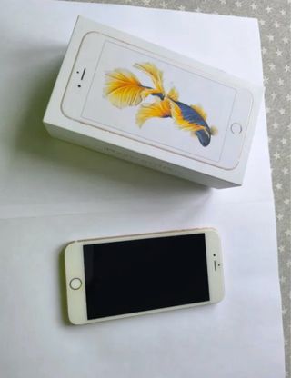 iPhone 6s en buen estado. - 💾 Capacidad de 64GB. - 🟡 Color oro. - 🔋 Batería: Recién cambiada y con la salud al 100%. - 🎁 Estado: Tiene marcas de uso en la parte trasera y una pequeña marca en la esquina inferior derecha de la pantalla como se puede ver en la imagen. - 🔌 Cargador: No incluído. - ☁️ iCloud: Libre Tengo disponibles fundas para el móvil que vendo a parte. Incluyo fotos en el anuncio. Si te interesarían no dudes en escribirme. ¡Tengo más productos a muy buen precio en mi perfil! ¡No dudes en mirarlos!