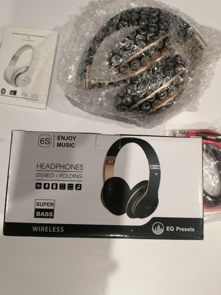 Auriculares cerrados inalámbricos 6S, peglables, micrófono incorporado, microSD/TG, FM se conecta con iPhone, Samsung, iPad, PC Color: negro oro Más detalles en las fotos. Son nuevos a estrenar.