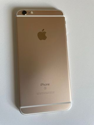 Teléfono móvil iPhone 6S Plus de 128 GB en color oro. - Pantalla de 5.5 pulgadas. - Cámara trasera de 12 MP. - Sensor de huellas dactilares. Sólo tiene una ligera separación de la pantalla a media altura, por lo demás está en buen estado. Se vende con su caja y cargador originales. Funda original de regalo.