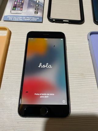 Teléfono móvil iPhone 6s Plus con acabado brillante y degradado. - Capacidad de 128 GB. - Incluye funda protectora con cierre a presión. - Cable de carga rojo. - En buen estado, poco uso, le he tenido guardado mucho tiempo. Batería nueva.