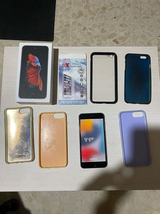 iPhone 6s Plus en perfecto estado, sin rayas ni golpes,en su caja original. - Incluye 5 fundas - Sin cable de carga(solo cargador) - Protector de pantalla a estrenar de cristal templado -Tiene un par de manchas en pantalla( se aprecia en las fotos) que no afectan en nada.