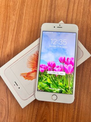 Vendo un iPhone 6S Plus en color rosa gold de 64 Gb de almacenamiento. El teléfono está en buenas condiciones. Solo tiene unos rascazos en la carcasa - Incluye caja original y cascos