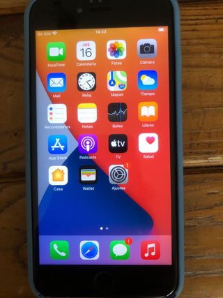 Teléfono móvil Apple iPhone 6s Plus en color gris. Buen estado. Capacidad de almacenamiento de 128 GB. Batería 73% Pantalla cambiada. Regalo Funda color azul.