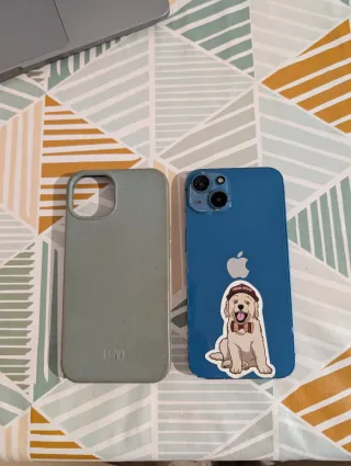 Teléfono móvil iPhone 13 de Apple. Tiene problemas en la batería, con un 70% de capacidad máxima. Además tiene problemas con la vibración. Regalo funda y protector de pantalla. - Pantalla de 6.1 pulgadas. - Cámara dual de 12 MP. - Chip A15 Bionic.