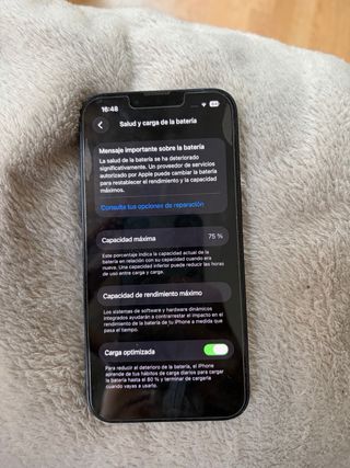 Teléfono móvil iPhone 13 en color azul marino. - Pantalla de 6.1 pulgadas. - Sistema de cámara dual avanzado. - Chip A15 Bionic. Estéticamente está impecable, solo habria que reacondicionar la bateria. Va con fundas de regalo.