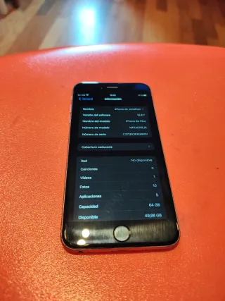 iPhone 6s Plus con 64 GB de capacidad. - Modelo: MKU62QL/A - Número de serie: C37QNJKKGRWV - Capacidad: 64 GB - Disponible: 49,98 GB