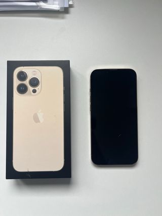 Teléfono móvil iPhone 13 Pro Max en color dorado. Se vende con la caja del 11 pro max por que tiré la de este y sin cable. La batería está deteriorada pero el resto está en buenísimas condiciones. - Pantalla de 6.7 pulgadas. - Sistema de triple cámara avanzado. - Chip A15 Bionic para un rendimiento.