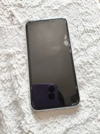 Teléfono móvil iPhone 11 con 128 GB de almacenamiento. - Pantalla de 6.1 pulgadas. - Chip A13 Bionic. - Sistema de cámara dual. Lo que se ve dañado en la pantalla es el cristal templado, solo hay que cambiarlo. Por lo demás funciona perfectamente, la vida útil de la batería es del 70%.