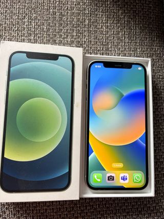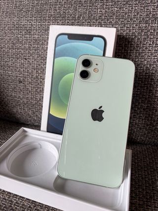 Teléfono móvil iPhone 12 de Apple. - Color verde menta - Pantalla de 6.1 pulgadas. - Capacidad de 64 GB. La batería no es original la cambie y tiene una duración de dos días.