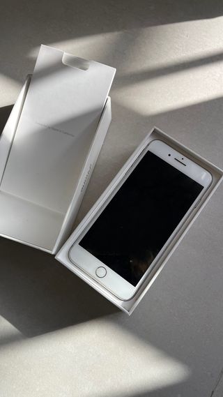 Teléfono móvil iPhone 6 en color plata. Incluye su caja original. - Pantalla de 4.7 pulgadas. - Cámara trasera de 8 MP. - Capacidad de almacenamiento de 16 GB. El móvil está impoluto, tal cuál se ve en las fotos. No tiene ni arañazos ni rasguños ya que siempre se ha usado con funda y cristal templado. Lo único que recomiendo es cambiar la batería ya que se descarga pronto.