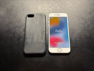 iPhone 7 128 GB (77%) de color gris claro y funda negra.
