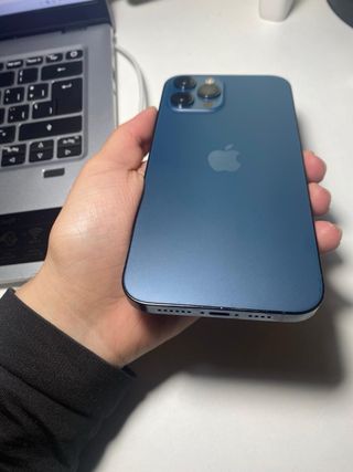 Teléfono móvil iPhone 12 Pro Max con 128GB de almacenamiento en color azul. La batería tiene un 91% de salud. 🔹 Pantalla Super Retina XDR de 6,7” 🔹 128 GB de almacenamiento 🔹 Cámara triple profesional (ultra gran angular, gran angular y teleobjetivo) 🔹 Grabación de vídeo 4K 🔹 Face ID 🔹 Compatible con 5G 🔹 iOS actualizado