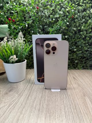 iPhone 16 Pro Max en acabado Titan Desert con 256GB de almacenamiento. - Capacidad de 256GB. - Color Titan desert - Pantalla de 6.7 pulgadas. - Capacidad máxima de batería: 100% - Número de ciclos: 188 - Primer uso: Octubre de 2024 En estado muy bueno. Se entrega con caja y cables originales. Está en garantía.