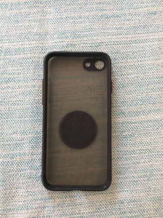 Hola Carcasa negro mate,para el iPhone 7/8/SE. Con placa ,para soporte de iman. Con signos de uso, pero sin rotura alguna Protección completa, admite cristal templado, y reforzada en las esquinas. Incluye su caja original.