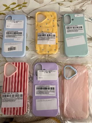 Se venden fundas para iPhone 17, nuevas y sin sacar del embalaje original. Se venden por separado a 4€ o en pack de dos por 7€. Disponibles en varios colores. - Funda azul claro. - Funda amarilla con puntos y relieve. - Funda verde menta. - Funda rosa con rayas y relieve. - Funda morada. - Funda rosa traslucida.
