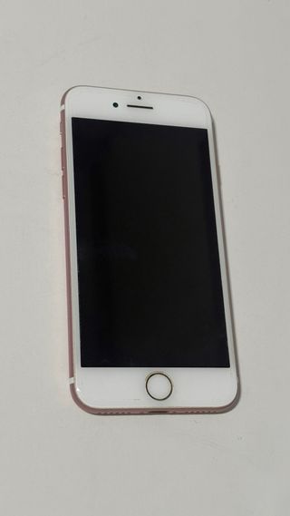 Teléfono móvil iPhone 7 en color rosa. Boton home no funciona, pero con el boton en pantalla se sigue usando con normalidad.