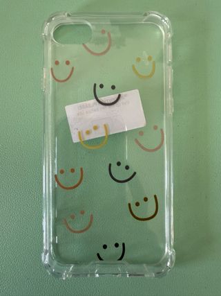 3 carcasas/fundas de silicona para iPhone 7. La de las caras sonrientes está nueva sin usar, la de los corazones se ha usado muy poco, está como nueva, y la del mosaico sí que se ha usado bastante y amarilleada.