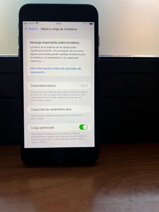 Smartphone Apple en color Space Gray. El teléfono está muy bien cuidado (ver fotos), siempre con funda y funcionando todo perfectamente (Touch ID, cámaras, etc.). PACK DE ACCESORIOS DE REGALO: ✅ Funda NUEVA. ✅ Auriculares NUEVOS ✅ Cargador y cable NUEVOS ✅ EXTRA: Cable de carga de 2 metros de largo (muy cómodo, ideal para usarlo cómodamente desde el sofá o la cama). ⚠️ Nota sobre la batería: La salud está al 72%. El móvil funciona bien, pero de ahí su precio más ajustado. Ideal para alguien que quiera un iPhone con todos sus accesorios nuevos por poco dinero, o para quien quiera ponerle una batería nueva y tener móvil para años.