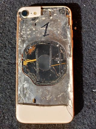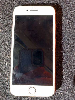 Teléfono móvil iPhone 8 en color blanco, ideal para obtener componentes o para reparar. - Pantalla perfecto estado. - Marco dorado.