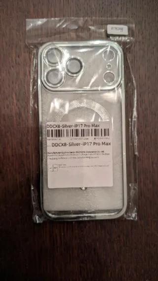 Par de fundas para iPhone 17 Pro Max. - Una con diseño transparente con detalles plateados. - Otra transparente. Protección para la cámara.