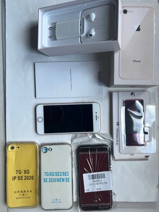 Vendo IPhone 8, impecable estado, sin un solo rasguño. Funcionando a perfección. Se puede probar y hacer entrega en mano. Desbloqueado y libre. Un solo propietario. Viene con su caja y todos los accesorios nuevos a estrenar originales. La batería actual dura 1 día, y se regala una batería nueva 100% (35€) para cuando quieras sustituirla. También se adjuntan 3 fundas de regalo nuevas a estrenar.