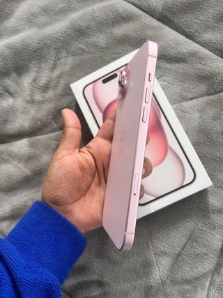 Teléfono móvil Apple iPhone 15 en color rosa. - Pantalla de 6.9 pulgadas. - Cámara principal de 48MP. - Capacidad de almacenamiento de 128GB. -Bateria 86% -carcasa trasera rota pero funciona correctamente PRECIO NEGOCIABLE