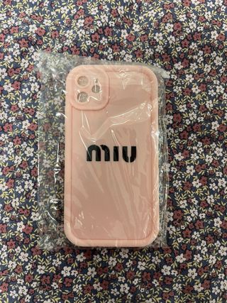 funda para iPhone 11 marca Miu Miu, sin usar, esta nueva. Es de color rosa claro y tiene un tacto suave. - Nueva, a estrenar. - Diseño elegante y minimalista. - Protección para tu teléfono.