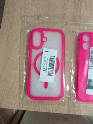 Dos fundas protectoras para iPhone 16 en color rosa. - Diseño con borde reforzado. - Material de silicona flexible. - Sin abrir.