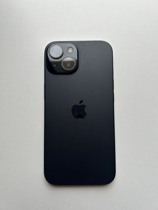 Teléfono móvil iPhone 15 en color negro y con 128GB de almacenamiento. - Salud de bateria: 86%. - Diseño elegante y moderno. - Pantalla nítida y vibrante. - Cámara dual para fotos impresionantes. - Algunas marcas de uso visibles en las fotos. - Se entrega con cable de cargador original y una funda.