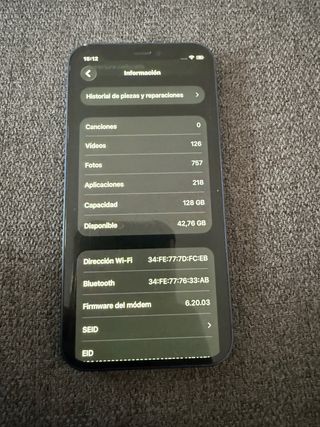 en perfectas condiciones de funcionamiento. El equipo presenta únicamente un pequeño raspón como marca de uso (estético, no afecta en nada su funcionamiento). (Se puede apreciar en una de las fotos) Cuenta con 87% de salud de batería. Se vende por cambio de móvil. Cable original (con marcas de uso ) Se conserva su caja. Ideal para quien busca un iPhone reciente, totalmente funcional y a buen precio. Posibilidad de Negociar precio si realmente está interesad@ se puede entregar en tres cantos y Alcobendas.
