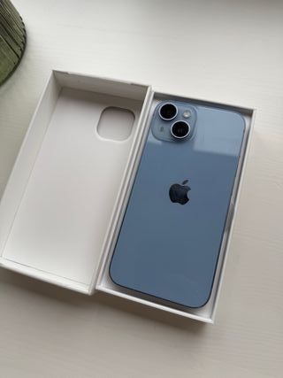 iPhone 15 libre azul claro Tiene 1 año (garantía con Telefónica) y salud de la batería original al 90% Viene con su caja y cable original La pantalla está intacta porque siempre ha estado protegida y no tiene ningún golpe
