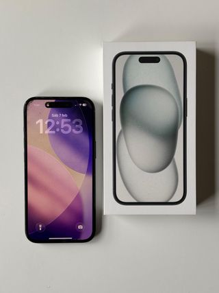 Teléfono móvil iPhone 15 con capacidad de almacenamiento de 128GB. - Comprado en Julio de 2024 - 87% de salud de batería - Siempre con funda y protector de vidrio templado (+ apple care) - Diseño elegante y moderno. - Pantalla nítida y vibrante. Se puede negociar. **la marca de arriba a la izquierda es del cristal templado